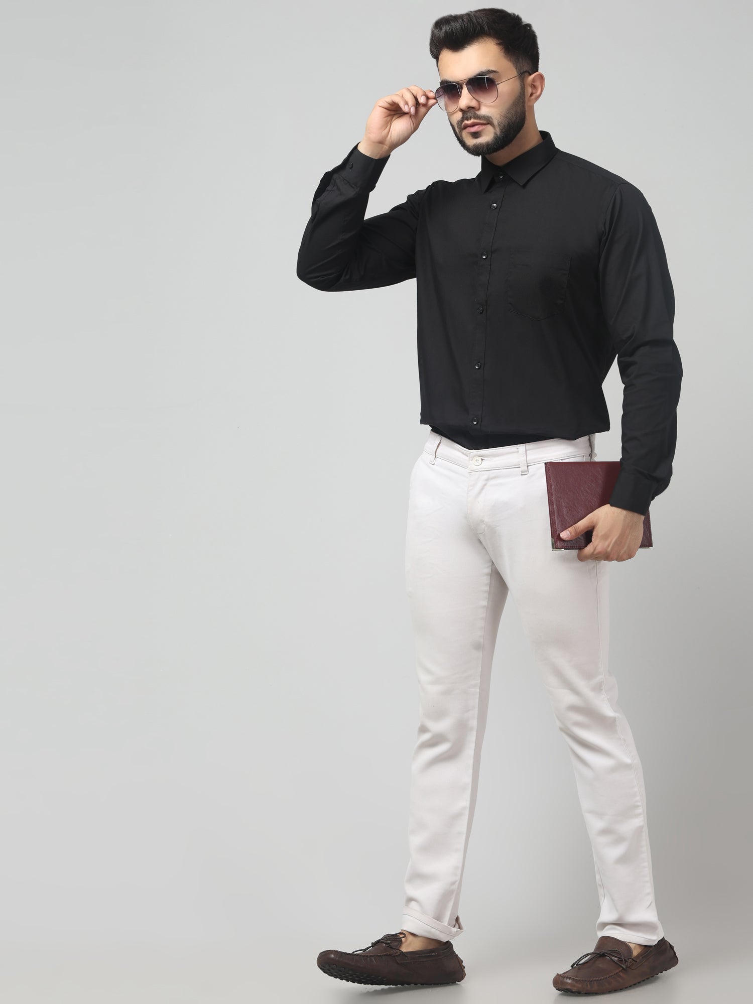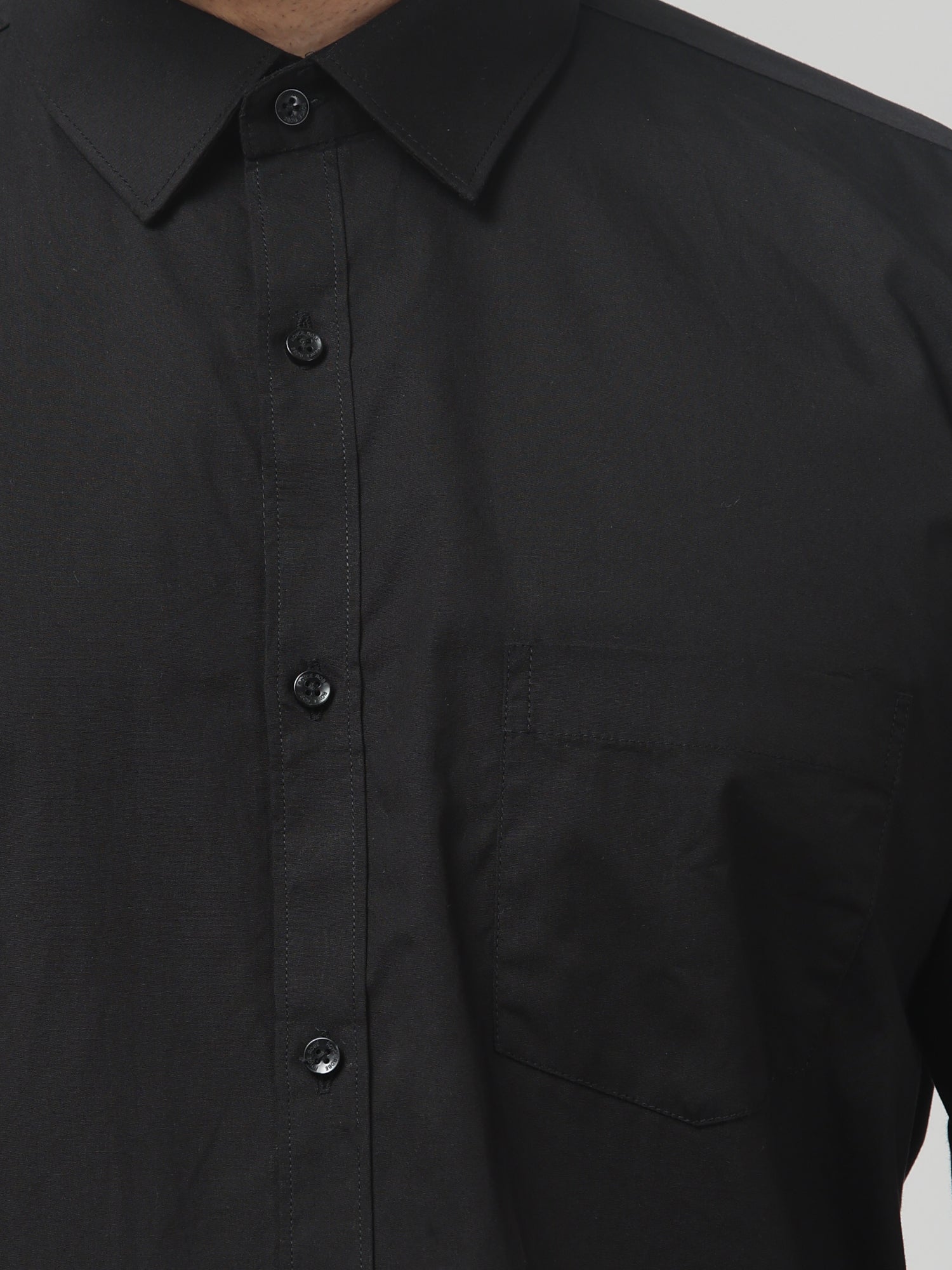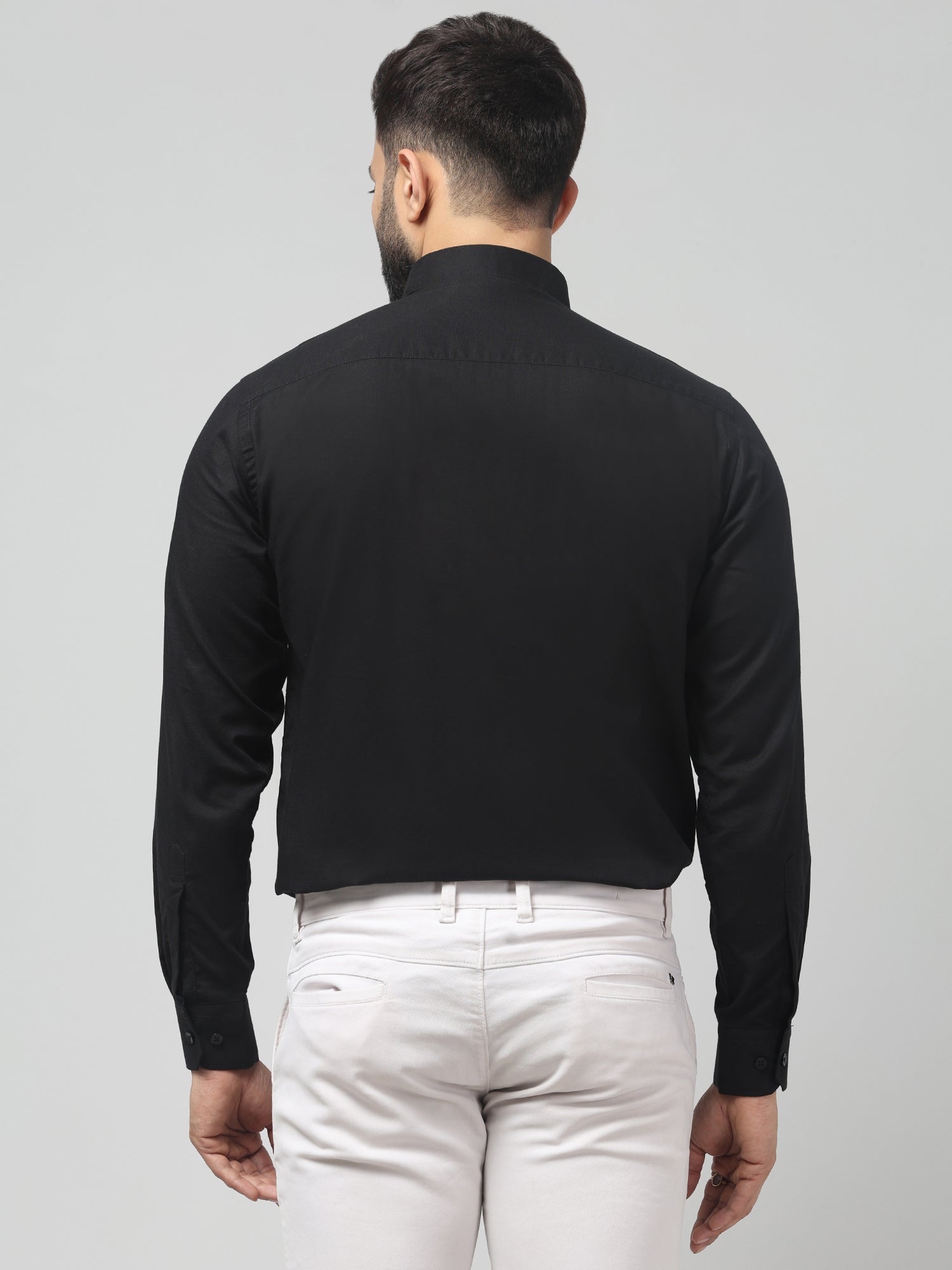 Men's Formal Black Solid Print Full Sleeve Shirt
