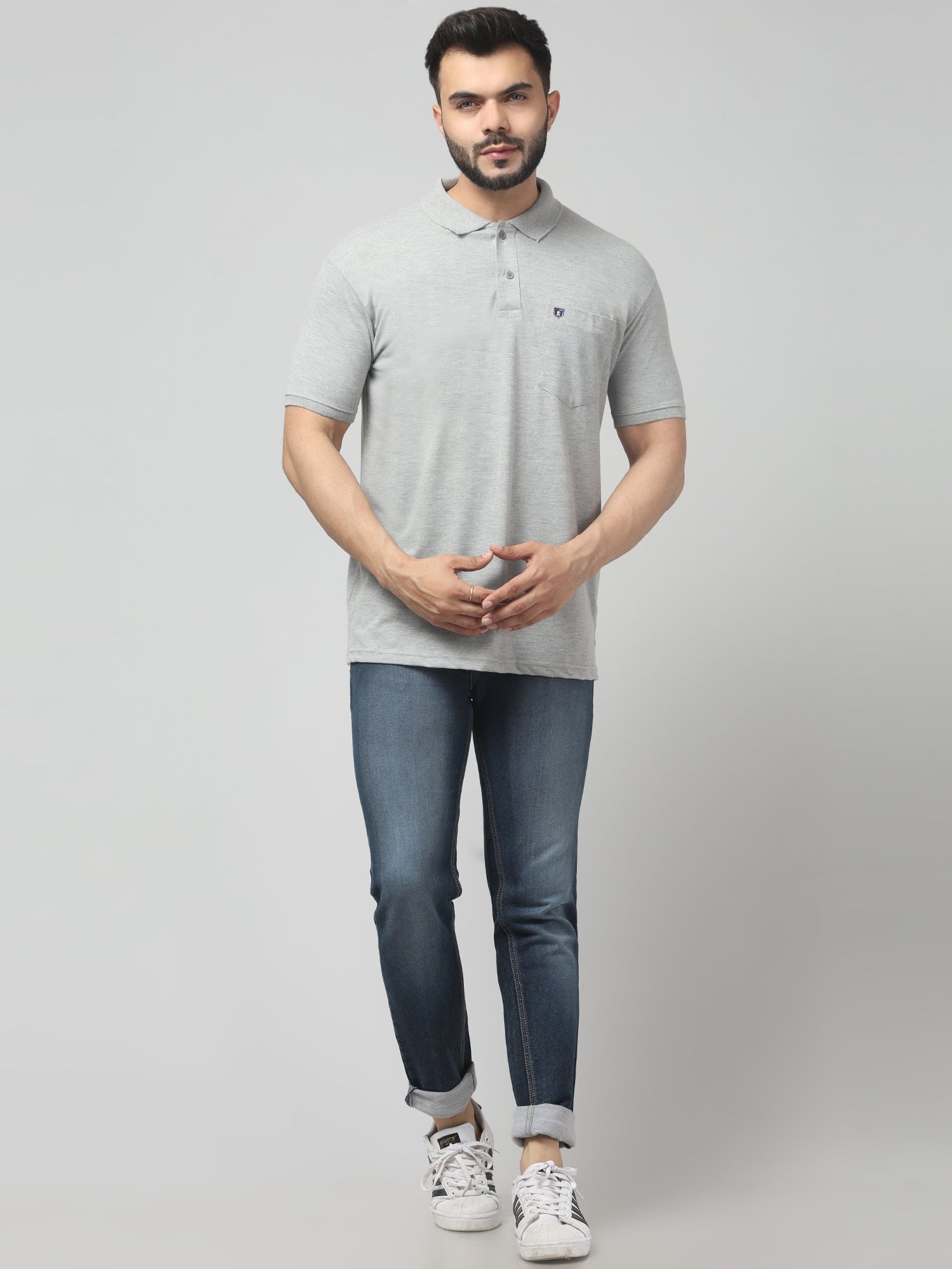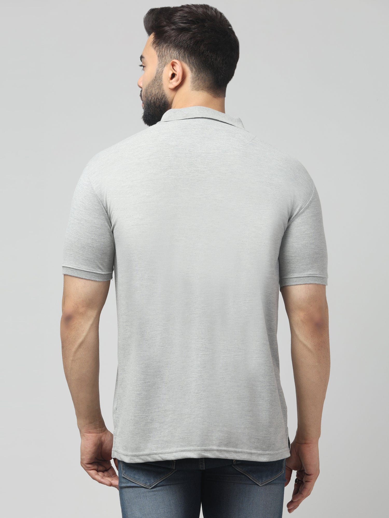 Men's Light Gray Polo Neck Half Sleeve T-Shirt